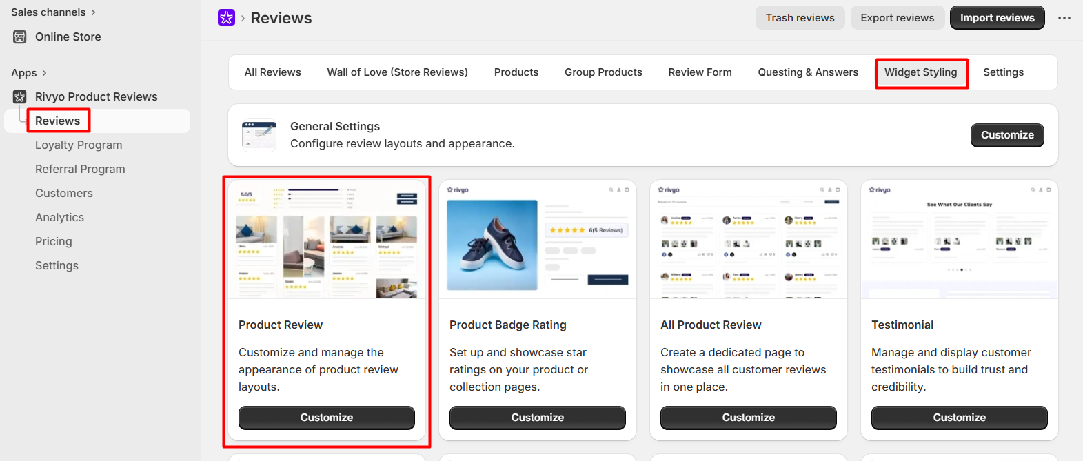 The product review section is a crucial part of your customer's buying journey. With our customization options, you can align the design and layout of this section with your brand’s identity and your personal preferences. This guide will walk you through how to adjust the settings for product reviews in your store.