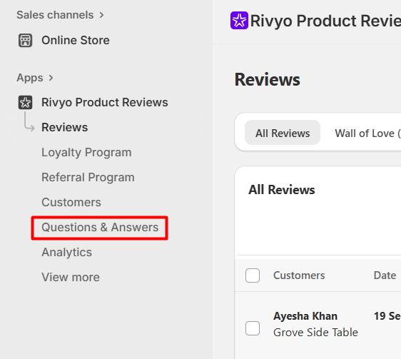 In order to activate the Question & Answer module, please navigate to the Rivyo Product Review App and proceed to the Questions & Answers section.