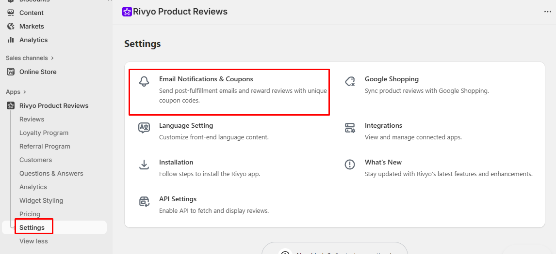 - From your Shopify admin, go to Rivyo: Reviews & Loyalty App.