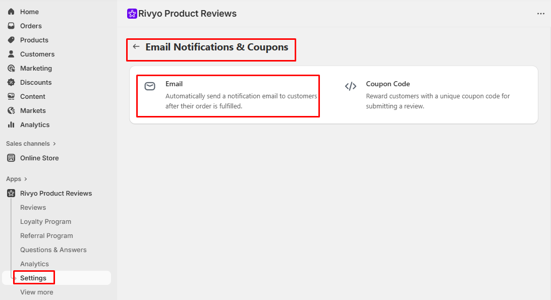 - From the main menu, go to Settings and select Email Notifications & Coupons.