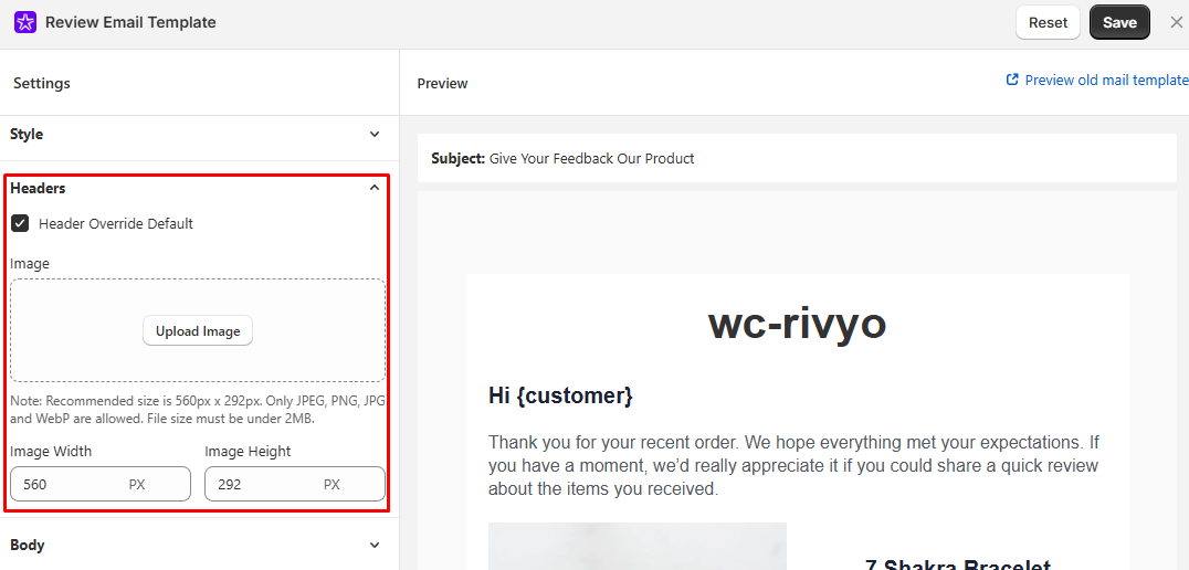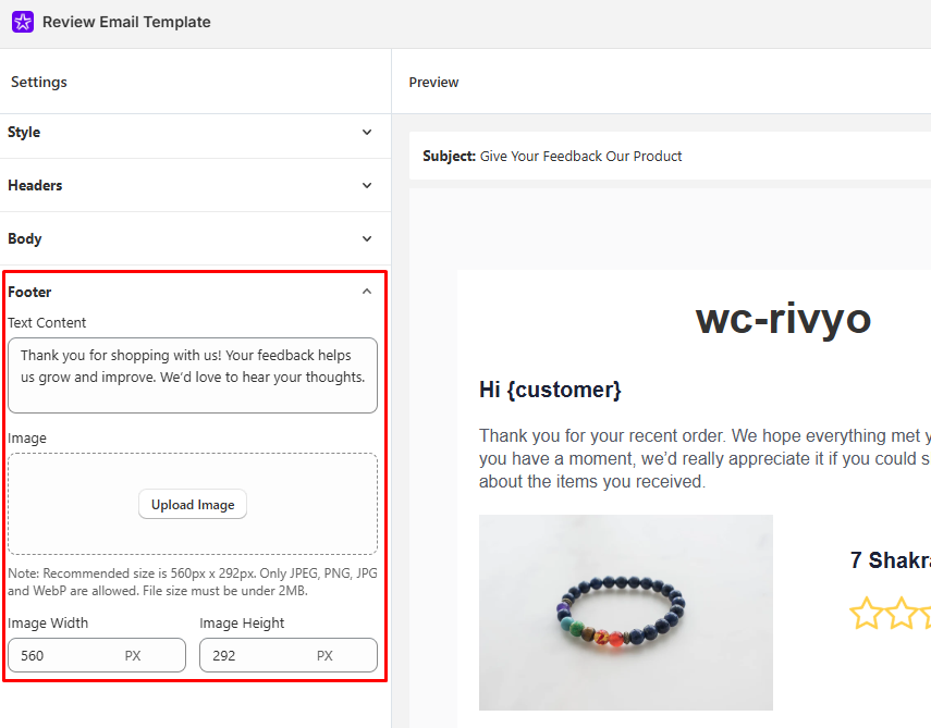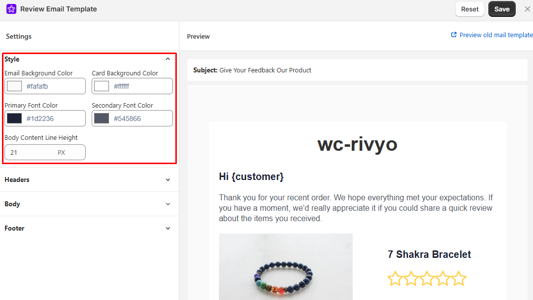 - Body Content: Edit the main text asking for the customer's review that align with your store.