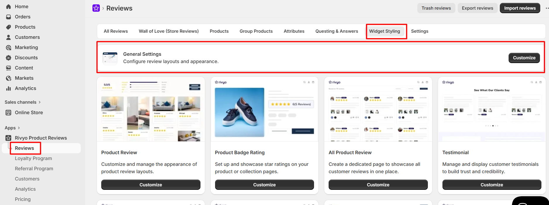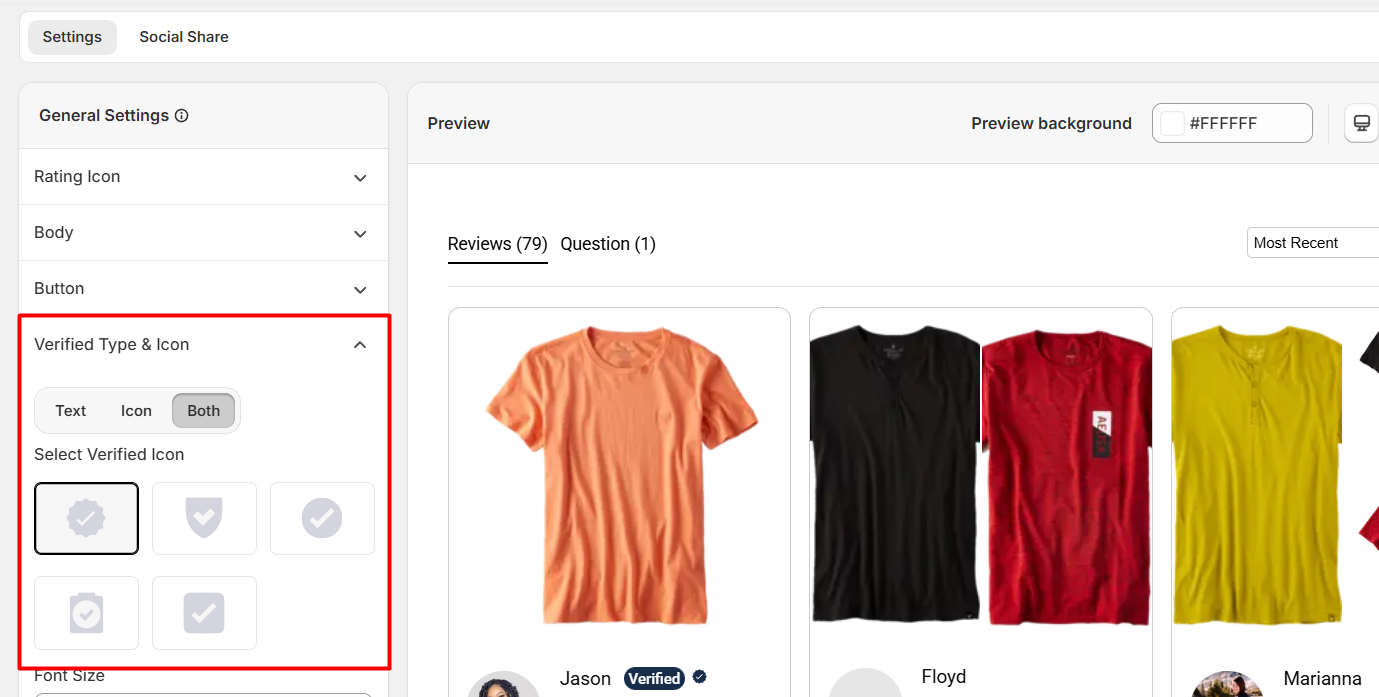 You can display "Verified" badge as text, an icon, or both by navigating to Reviews >> Widget Styling >> General Settings >> Click on Customize button.