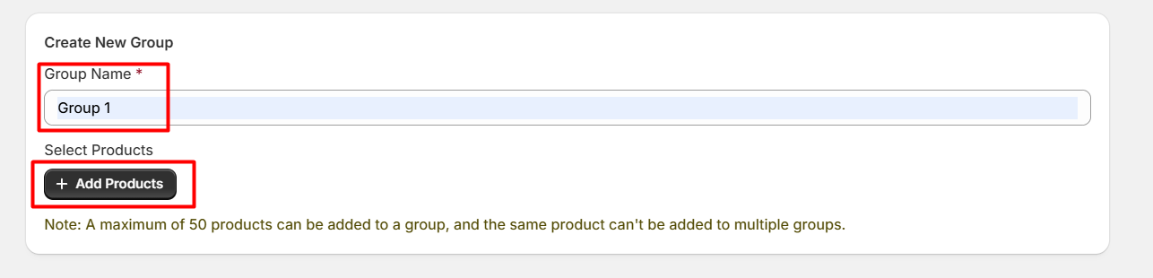 (Note: You can add a maximum of 50 products in one group. You can't insert the same product in multiple groups.)