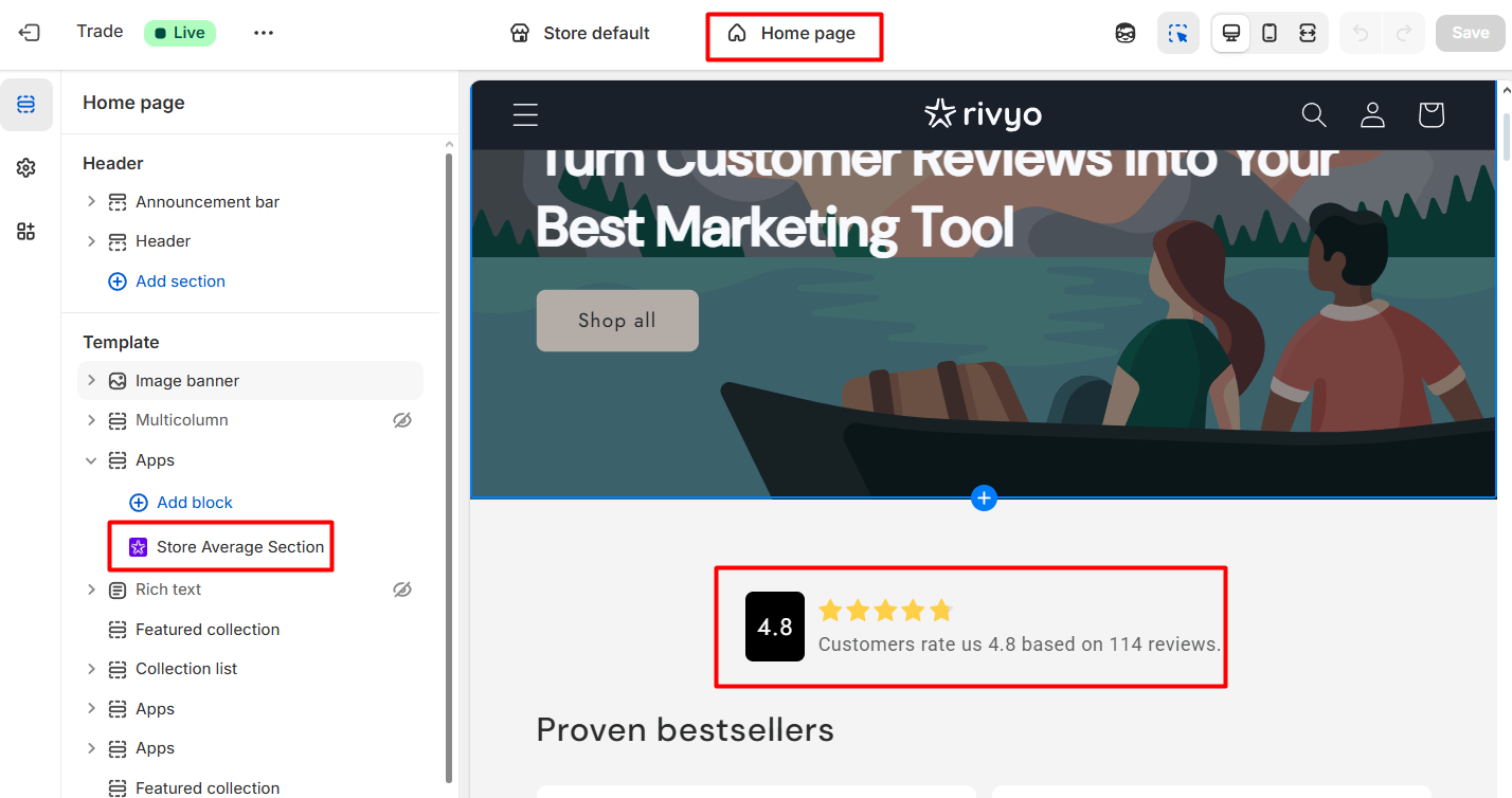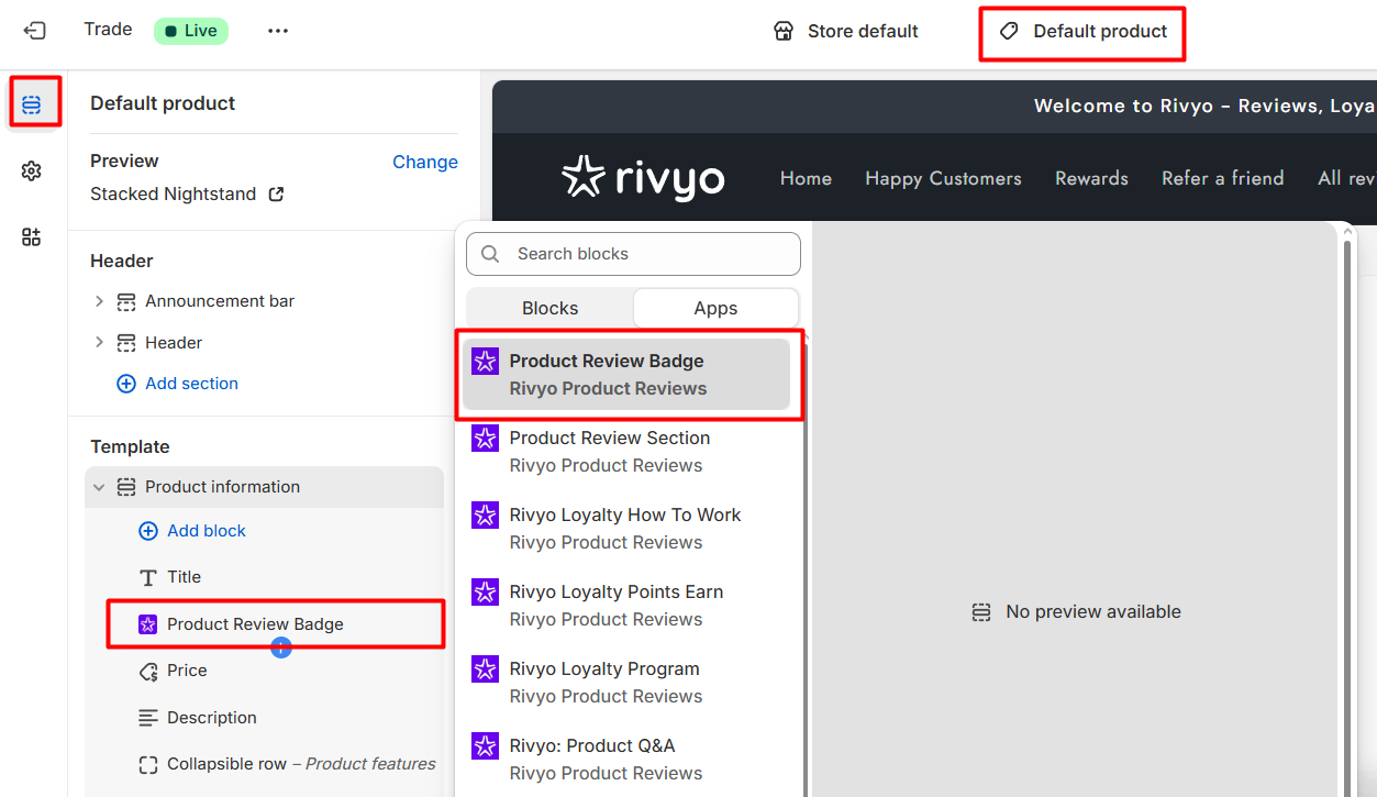 Step 1 : Enable the embedded Rivyo Product Reviews.
