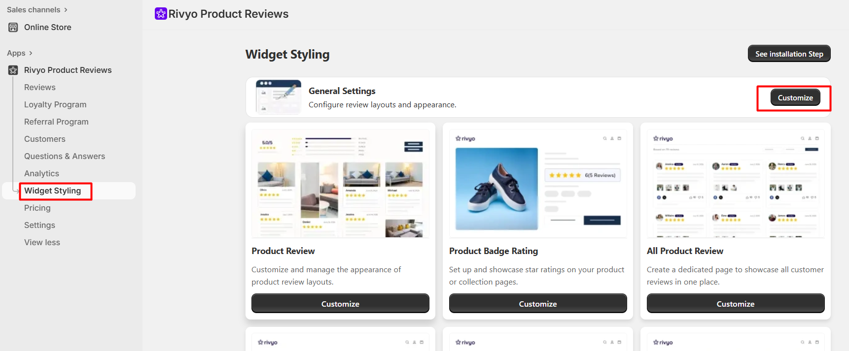 Step 2: Select Widget styling >> General Settings >> Click on Customize Button