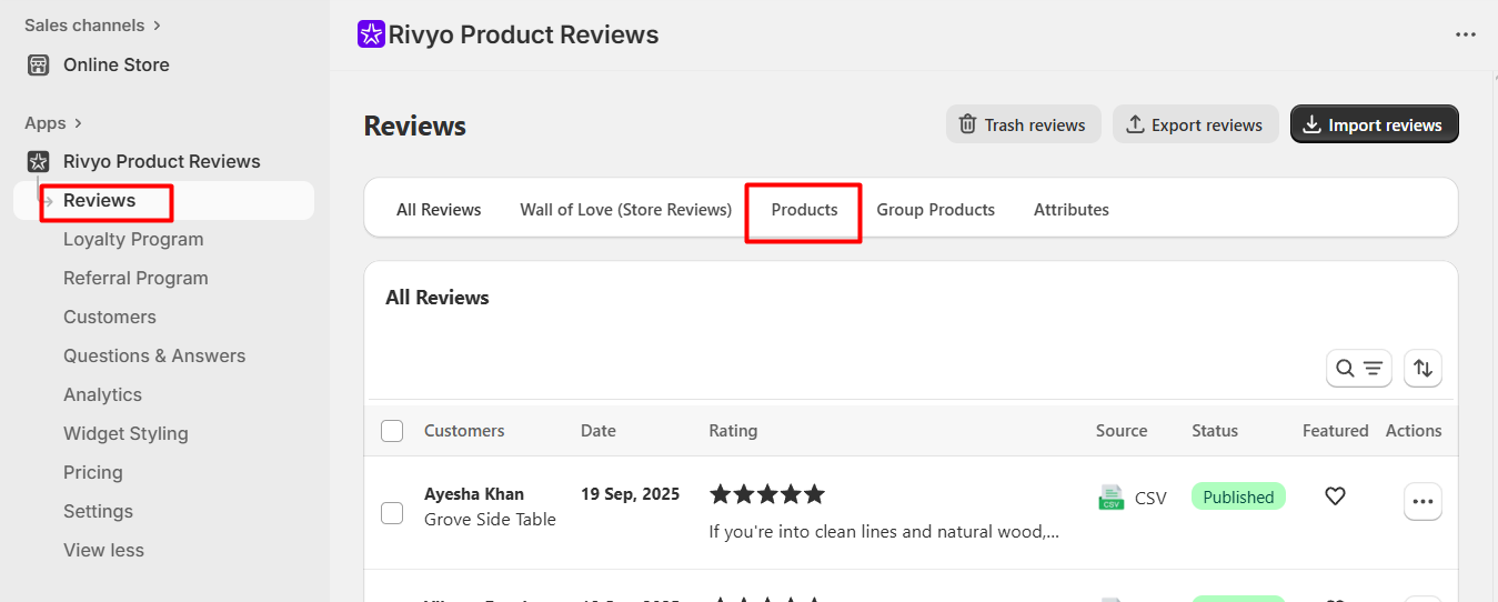 To pin one or more reviews in your Rivyo admin panel, follow these simple steps: