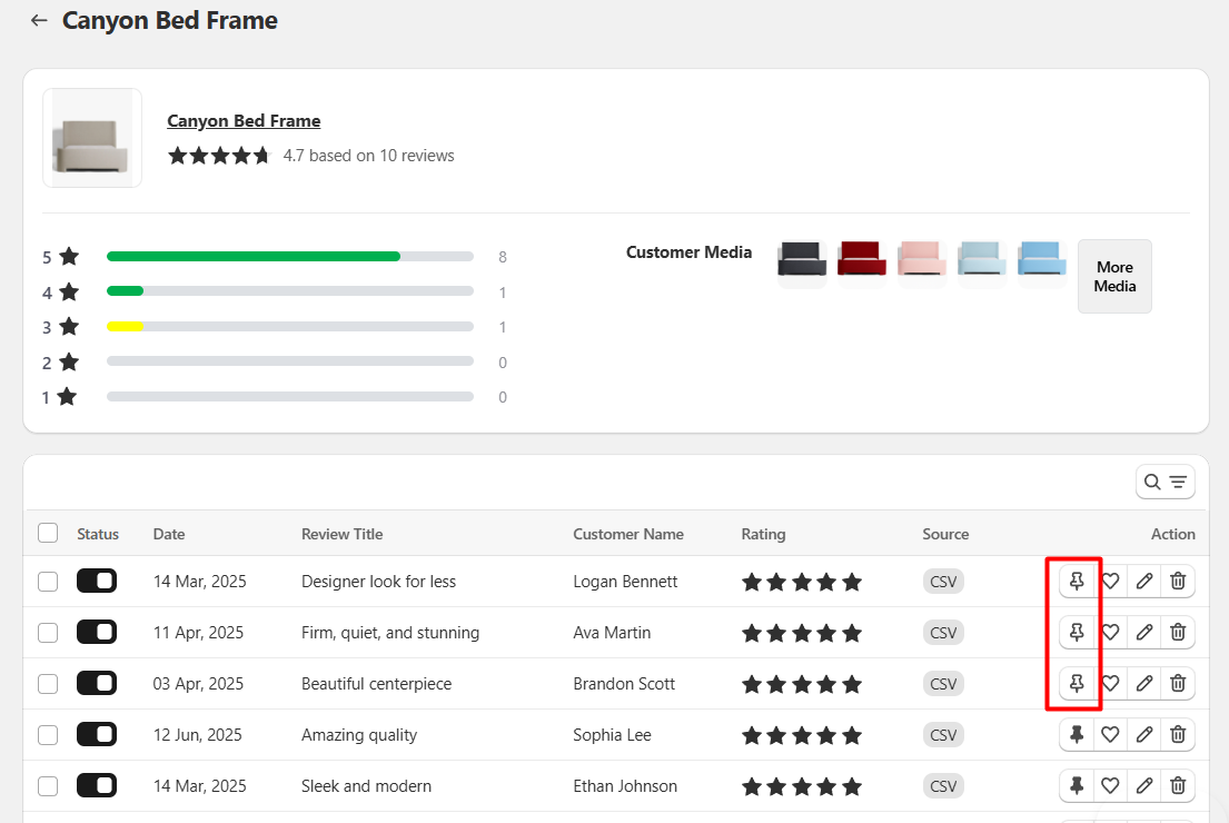 Highlighting customer reviews is a great way to showcase positive feedback and provide immediate insights to new visitors. By pinning reviews, you can ensure your most valuable customer reviews always appear at the top of your review list.