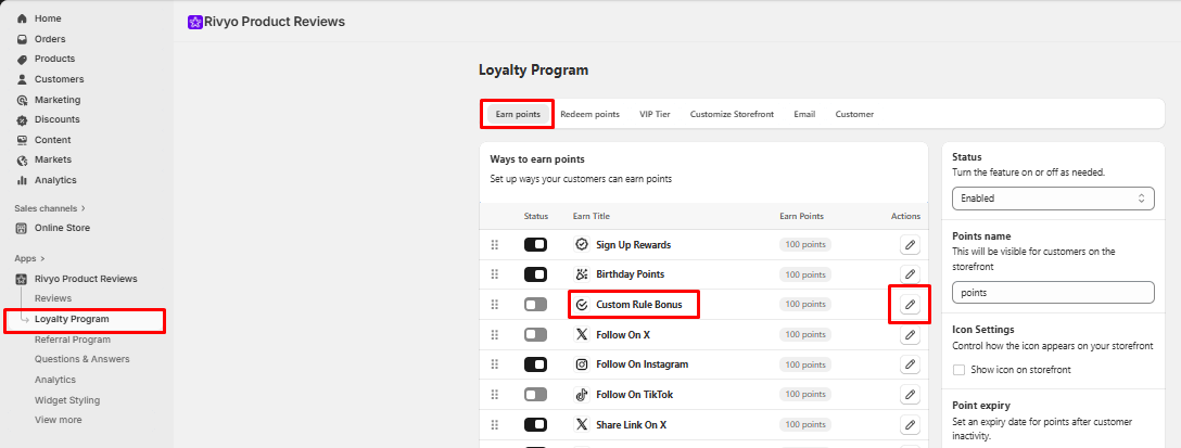 Important Note: Both the Custom Action in Rivyo Loyalty and the Workflow in Shopify Flow must be enabled for the points to be awarded successfully.