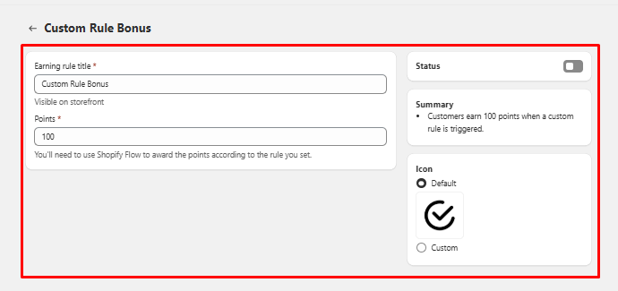 Earning Rule Title: Provide a name for the custom earning rule (e.g., SubscriptionReward).
