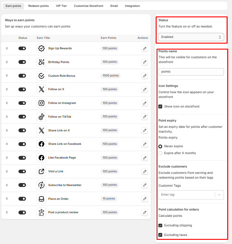 Earn Points allows customers to collect points by performing specific actions on your store. These points encourage engagement and help build long-term customer loyalty.