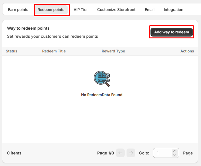 - To create the Redeem point, Select the Redeem Point tab and click on the Add way to redeem button
