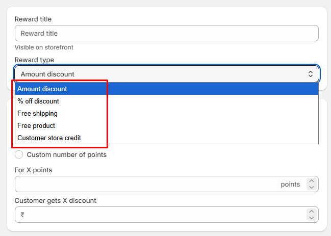 - % off discount : Lets you customer redeem X points to unlock a X% discount on next order