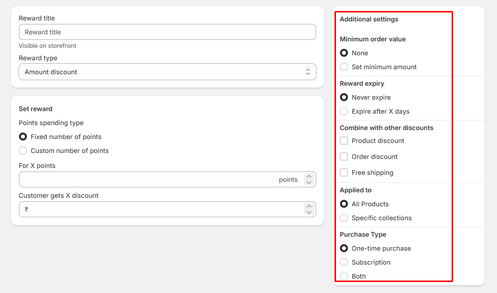 - Set Amount: Define a minimum order total to apply the reward.